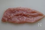 鶏ささみ肉は、筋を取り、開き、茹でて、食べやすい大きさに裂いておく。 | |