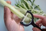 きゅうりは、両端を切り、ピーラーで縦に薄くスライスする。 新玉葱は、薄くスライスし、さっと水にさらし、よく水気をきっておく。 |