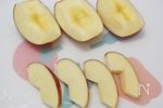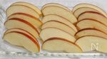 りんごは、皮をよく洗い、4等分して、芯を取る。 皿に、4等分する。 |