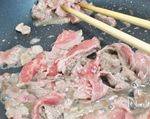 鍋に、ごま油を敷き、牛薄切り肉を炒め、肉の色が変わったら、湯を加え、①の野菜、A 干しシイタケ 5g、水 1カップ を加え火を通し、B鶏がらスープの素(顆粒) 大さじ1、コチュジャン 小さじ2、酢 小さじ1、砂糖 2つまみ、白すりごま 小さじ1 を加える。 |