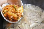 アクを取り、白菜キムチ、ご飯を加えひと煮立ちし、味をみて、塩を加える。 器に盛り、万能ねぎ(小口切り)を飾り、ラー油をたらす。 |