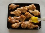 肉を取り出し、トースターの天板に並べ、表面にオリーブオイルを塗る。 | |
