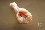 手羽元の骨のまわりに切り込みを入れる。 | |