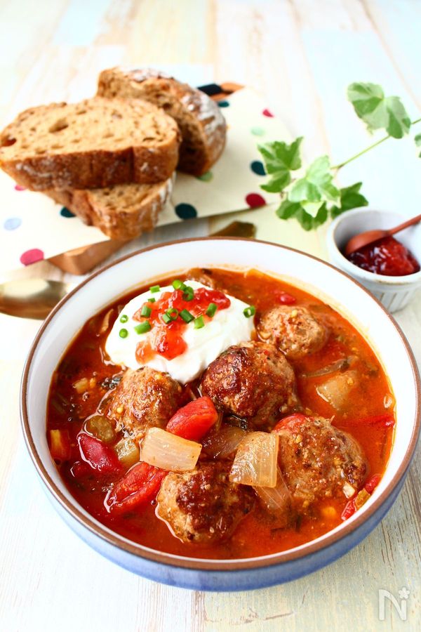 いちごジャムでまろやかに!ふんわりミートボールのトマト煮