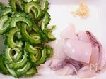 ゴーヤーは種とワタを取り、5mm厚さに切って塩少々(分量外)でもんで 5分おき、洗い流す。しょうがはみじん切りにする。 いかはさばいて一口サイズに切り(※食べやすさと見た目を考慮して、 皮をむいて格子状に包丁を入れておくとさらによい)、酒をまぶす。 |
