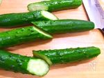 きゅうりは洗って水けを拭く。ヘタを取り、半分長さに切る。 | |