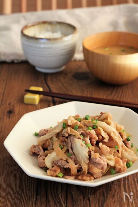 『豚肉とキャベツのくるみ味噌炒め』