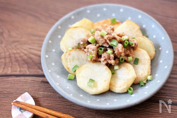 ほくほくのじゃがいもに、肉味噌を絡めていただく一品。メインのおかずとしてはもちろん、おつまみにも最適です。材料が少なく、フライパン1つでできるので、忙しい時でもパパっと作れるのが嬉しいところ。