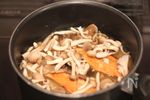 きのこは石づきをおとし、小房にほぐす。 | |