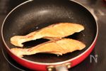 鮭はフライパンで両面焼きつけ、皮を取る。 | |