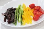 にんにくと生姜はすりおろしておく。 パプリカはスティック状に、アスパラは4センチ幅の斜め切りにする。 きくらげは乾燥しているものは水で戻し、石突部分を切り落としてからパプリカと同じくらいの大きさにカットする。 プチトマトは半分にカットする。 |