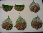 大葉に6等分にした2の具を乗せ、折りたたむようにして包んで形を整える。 | |