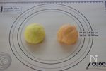 それぞれに少しのピズでペースト状にした カレー粉、パプリカパウダーを入れてよく捏ねる |
