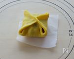 さらに角を中央に持って来てしっかりと留める べたつくようなら打ち粉をする |