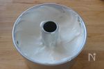 オーブンから出したらひっくり返して瓶などに立てて冷ます 冷めたら側面、内側を型から外し、底の部分も外す |