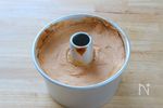型に流し込み、全体に均等に生地が入るようにゴムベラでならす 170℃で30〜35分焼成する |