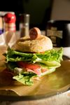 がんもどき、レタス、ベーコン、レタス、 ②のソースを乗せる。 | |