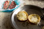 ③にベーコン、トマトを乗せてもう1枚のがんもで蓋をして出来上がり。 | |