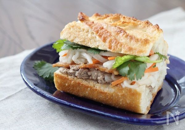 紅白なますで、ベトナムのサンドウィッチ「バインミー」を作ってみませんか? なますにナンプラーを加えてエスニック風に。パンはフランスパンなどハードなものを使います。