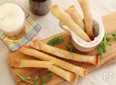 煮しめの里芋は、つぶしてチーズとスティック春巻きに。煮しめの残りとは思われないかもしれません。細長いスティック春巻きは、おつまみにもおやつにも喜ばれそうです。