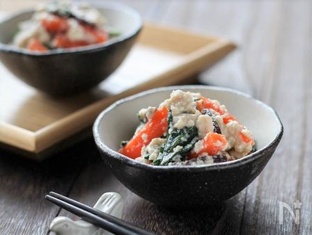 手間のかかる白和えを、ごまだれを使って手軽に作った時短白和えです。