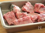 鍋にお湯を沸かし、ぶりを入れて、全体が白くなったらざるにあけ、冷水にとる。 流水で、血の塊やうろこ、ぬめりなどをしっかり洗い流し、キッチンペーパーなどで水けを取る。 |
