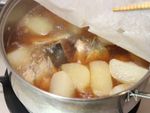 みりん、砂糖、下茹でした大根も入れて、落し蓋をして5分程度煮る。醤油を加えて20分位煮る。 (落し蓋は、キッチンペーパーなどを鍋のサイズに合わせて丸く切って穴をあけたものを使うと後始末も楽にできます) |