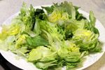 レタスは、芯の部分に切れ込みを入れて取り除く(できれば、プラスチックのナイフを使ってください) 手で半分に割って、さらに1/4に割る。 (包丁などの金気のものを避けてほしいです) |