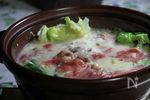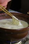 土鍋にA 豆乳 1000cc、昆布水 500cc、塩 ひとつまみ、白だし 100cc を合わせ温める。 |