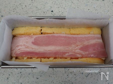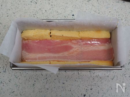 ・ベーコンは、パウンド型の大きさに合わせて切っておきます。