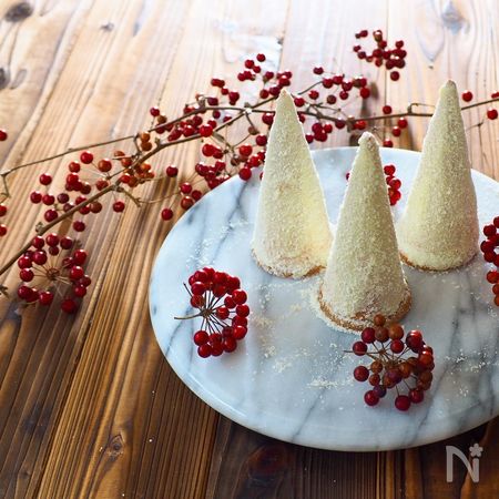 アイスクリームコーンを使うと、簡単にツリー型にできるんですよ。今回は、緑、白、そしてピンクのツリーチーズケーキをご紹介します。形も、彩りもクリスマスにぴったり。パーティーを盛り上げてくれること間違いなしです!