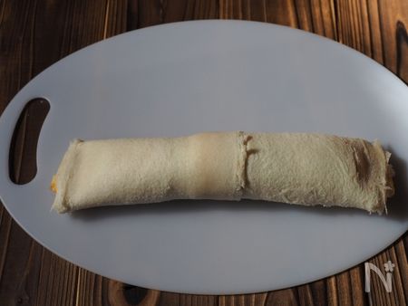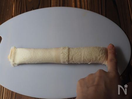 7.手前からきつめに巻いていきます。巻き終わりと両端をしっかり押さえてくっつけます。