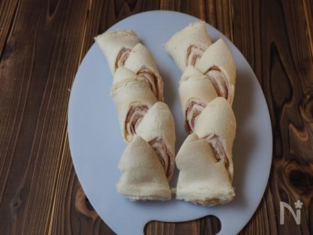 8.残りの食パン2枚で、1~6の工程を繰り返し、これに、7を手前にのせます。