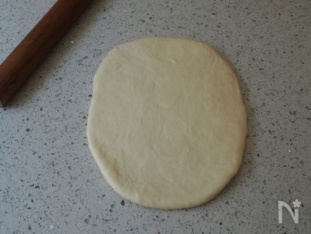 10、生地を牛乳パックの大きさに合わせて、綿棒で楕円形にのばします。