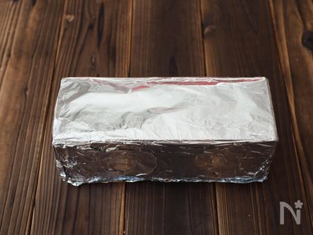 13、牛乳パック全体にアルミホイルをきつめに巻きつけます。180度に予熱したオーブンで、25~30分ほど焼きます。焼けたら型から取り出して完成!