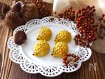 後ろまで、切り込みを入れたら、卵黄を刷毛で優しく塗ります。 ※難しければ、❷の段階で塗っても良い。 目は、黒ごまなどを付けます。 |