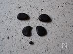 ブラックココアを混ぜた生地で、顔のパーツを作る。 耳は3g×6個、鼻は1g×3個、残りは6等分して目を作る。 |