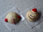 ❻に顔と体のパーツを付けて、クッキングシートに乗せ、室温で1.5倍になるまで発酵させる。 | |