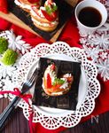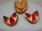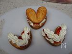 もう1枚源氏パイをのせ、ホイップクリームと苺でデコレーションする。 | |