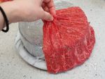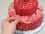 全部敷き詰め、下にはみ出た肉は中にパレットナイフなどを使って、中に入れ込む。 | |