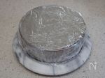 平らな台やお皿の上に、ラップで包んだ21cmケーキ丸型をおく。 | |