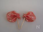 ハム1枚は半分くらいに切り、ギャザーをよせて爪楊枝でとめておく。 | |