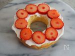 ❶にホイップクリームを薄く塗り、苺をのせる。 | |