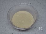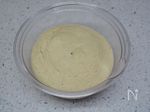 耐熱ボウルに、卵、ラカントsを入れてホイッパーで混ぜる。次に、牛乳を入れて混ぜる。最後に、おからパウダーとベーキングパウダーを入れてよく混ぜる。 | |