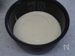 ❺を炊飯器の釜に入れて空気を抜く。 炊飯器にセットし、炊飯する。 炊き上がって、焼けてなければ、もう1度炊飯する。 |