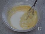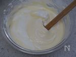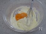 耐熱ボウルにクリームチーズを入れて、600wのレンジで30〜40秒程加熱し、混ぜてクリーム状にする。更に、卵黄を加えて混ぜる。 | |