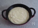 耐熱ボウルに、グループA クリームチーズ 40g、スライスチーズ 1枚、牛乳 大さじ1、バター 30g を入れて、600wのレンジで30〜40秒加熱して混ぜ溶かす。 |