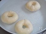 オーブンシートを敷いた天板に並べて、レンジ(200w)で40〜50秒ほど加熱する(ひとまわり大きくなるくらいまで)。 | |