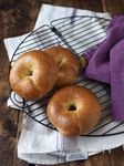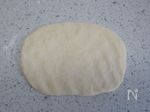 全体が混ざるまでよくこねて丸めて、レンジ(200w)で50秒ほど加熱する。 取り出して、スケッパーで4等分して丸め、パンマットなどに包み、乾燥に気をつけながらベンチタイムを10分取る。 |