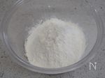 別の耐熱ボウルに、水を入れて、レンジ(600w)で20〜30秒ほど、人肌程度になるまで温める。 これに、ドライイーストを加えてよく混ぜる。 |